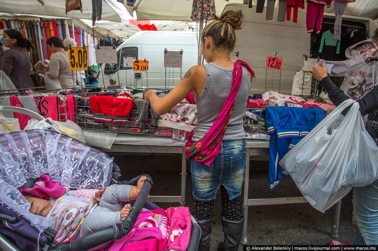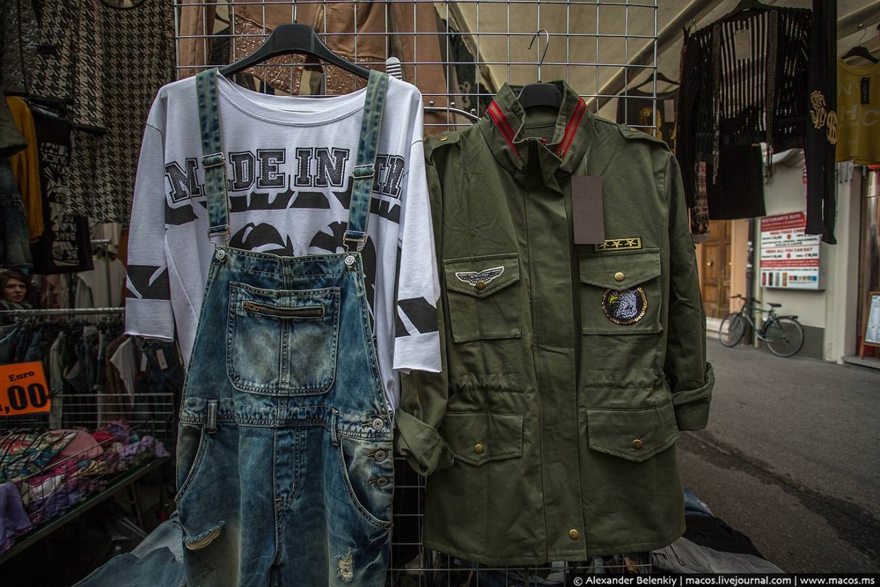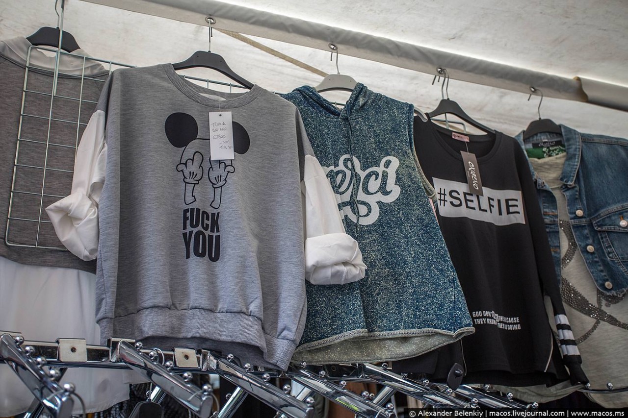 19 Одежда тут специфическая, конечно. Всё то, что не приглянулось в фирменных бутиках, не продалось в магазинах распродаж, попало на самое дно — на уличный вещевой базар. Дальше путь лишь на помойку.