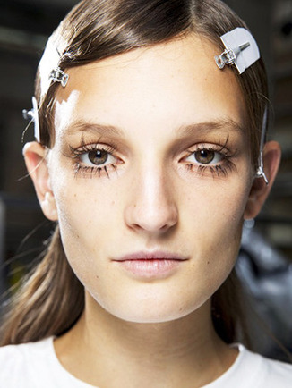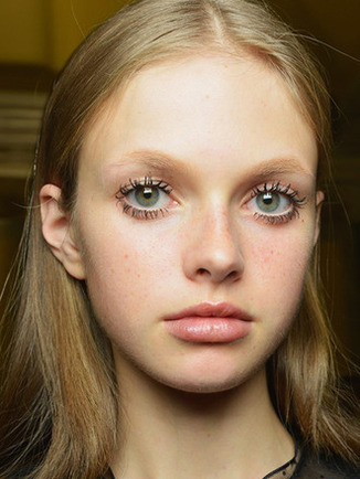 Склеенные ресницы. На контрасте с пышными и пушистыми ресницами в нынешнем сезоне — «ежики-колючки» будущего. Разделять слипшиеся реснички не стали визажисты на показах Marc Jacobs, Mary Katrantzou и Giles — можете смело выбросить надоевшую щеточку и вы!