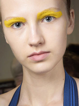 Футуристический макияж. Визажисты в этот раз махнули кистями уж очень смело: макияж моделей выглядел так, как будто на веках рисовали не тенями, а красками. Флуоресцентный «маркер» у Giambattista Valli, «маску ниндзя» у Chanel и желтую гуашь у Missoni дополнили золотые брови у Givenchy и губы с эффектом деграде у Miu Miu — ну не фантастика ли?