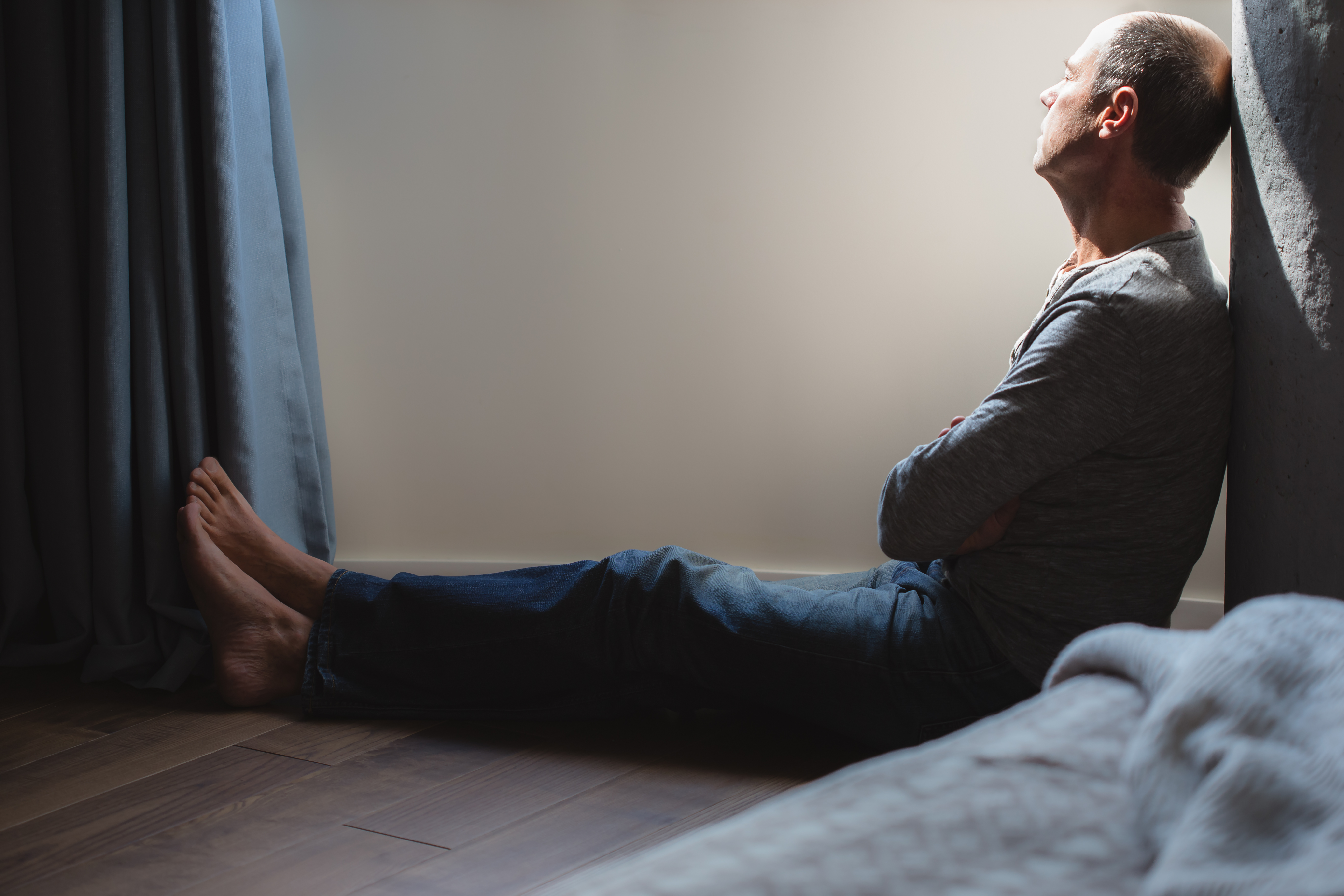 Мужчина в депрессии видит мир в чёрных тонах.