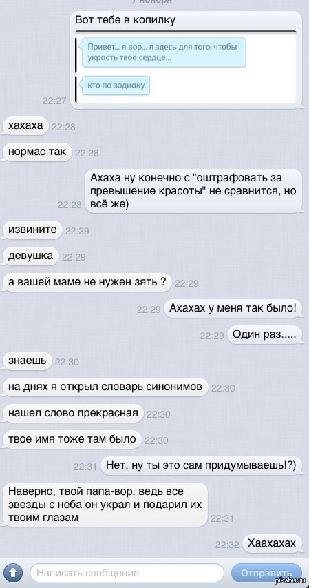 Когда я написала ему, что он очевидно пикапер, он стал изображать из себя оскорбленного интеллигента, и у нас состоялась такая комичная переписка: