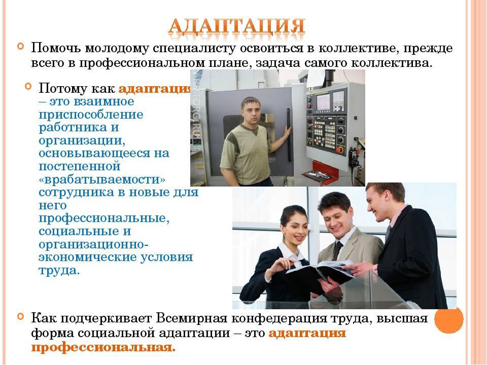 Начало работы на новом месте – это сложный процесс привыкания к новому коллективу, должностным обязанностям, режиму дня и т. д. Закончится период адаптации только тогда, когда Вы из нового сотрудника превратитесь в полноправного члена коллектива, займёте своё место в системе профессиональных и личных отношений.