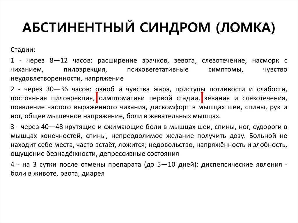 Легкими симптомами могут быть повышенное кровяное давление, бессонница, дрожь, гиперрефлексия, тревога, желудочно-кишечные расстройства, головная боль, учащенное сердцебиение.