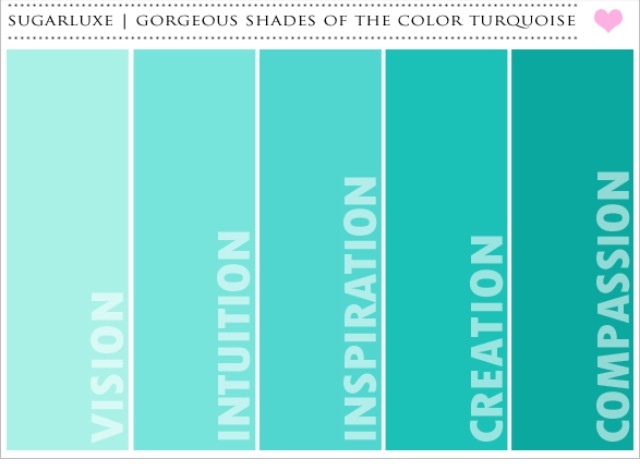 Бирюза — дружелюбный и радостный цвет, получивший свое название от драгоценного камня, который происходит от французского слова, означающего турецкий.