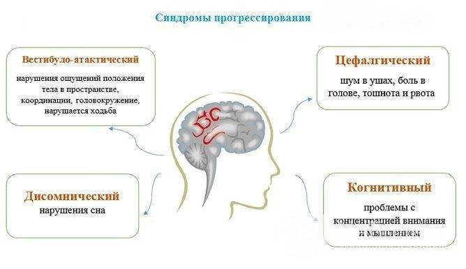 Неврологическая рассеянная микросимптоматика объясняется повышенным внутричерепным давлением, легкими нарушениями ликвородинамики, изменениями электрической активности мозга по резидуально-органическому типу. Церебрастении свойственно регредиентное течение, редукция клинических проявлений. Возможны периоды декомпенсации, провоцируемые соматическими заболеваниями, стрессовыми ситуациями, возрастными кризисами.