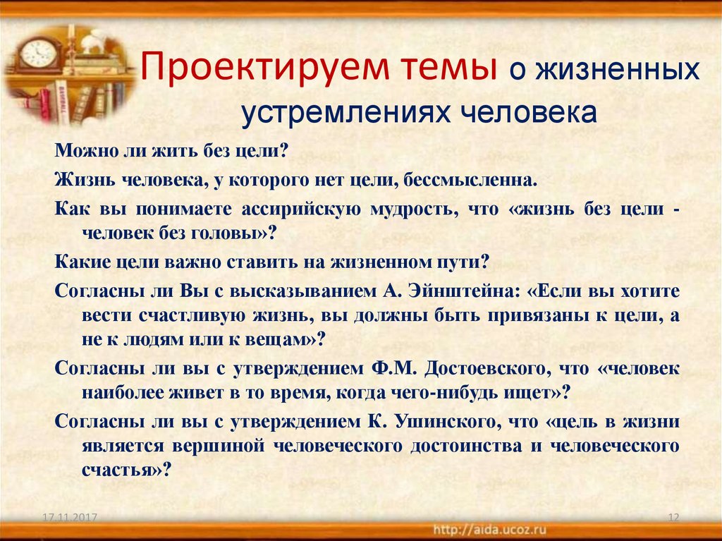 Ребята хотят четко понимать, что им нужно и как этого добиться, и сделать правильный выбор. Но и взрослых на определенном этапе жизни волнует этот непростой вопрос. Это вполне логично: определение целей в жизни важно всегда и в любом возрасте. Иначе «корабль будет плыть без фарватера». И нет ничего хуже, чем чувствовать неудовлетворенность от жизни.Жизненные цели у всех разные. У кого-то это успешная карьера и бизнес, у кого-то счастливая семья, у кого-то духовное развитие и служение Богу. Абсолютное большинство ставит перед собой цели в разных сферах жизни — чаще это карьера и семья. О них мы и поговорим.