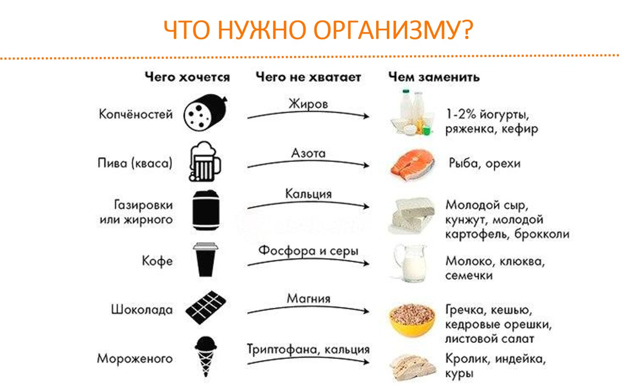 2. Настройте режим питания. Очень важно, чтобы Вы питались сбалансированно и в течение суток получали необходимую дозу жиров, белков и углеводов. Чтобы меньше хотелось вредных сладостей употребляйте продукты, которые содержат: