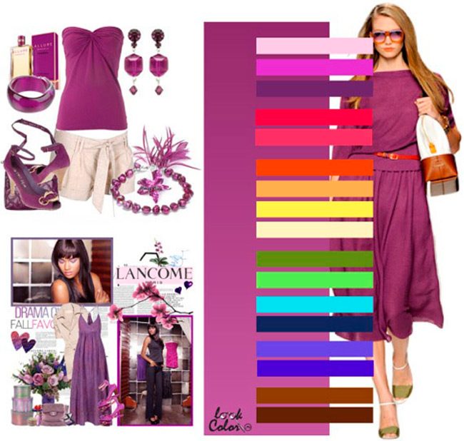 Сочетание фиолетового с белым, бежевым, серым и черным дают безоговорочное преимущество главному цвету.