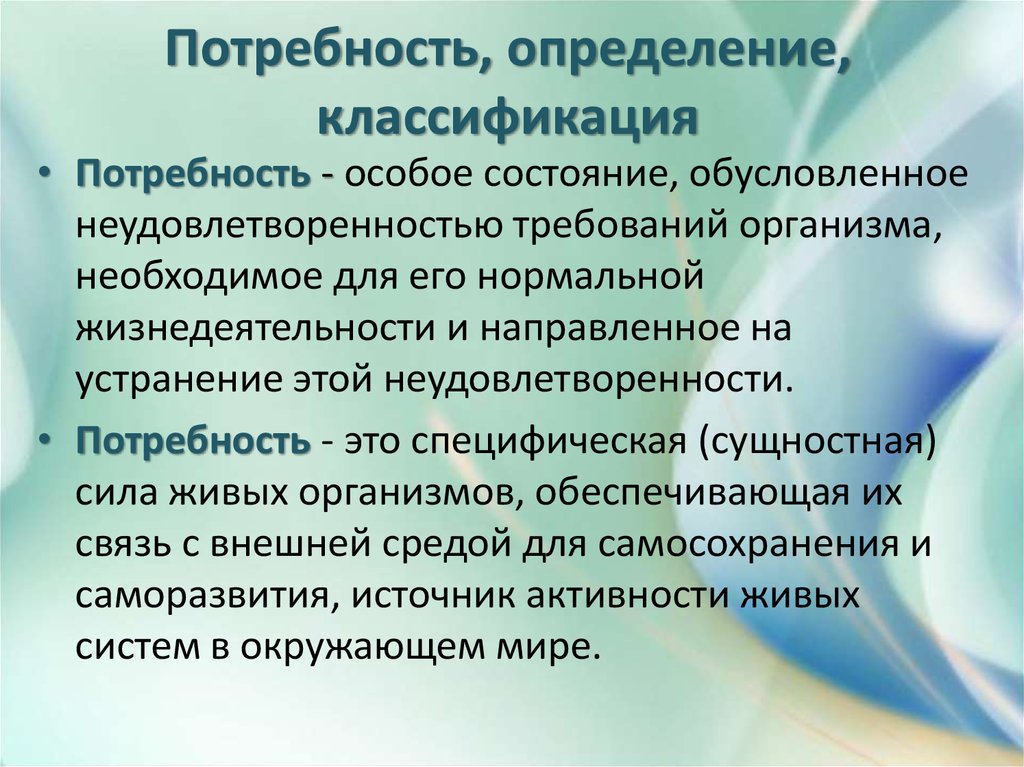 ПОТРЕБНОСТЬ – нужда человека в чем-либо.