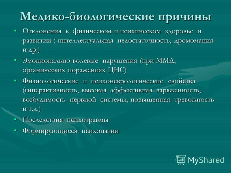 Объясняется же дромомания в том числе и приступами дисфории, свойственной людям с данными заболеваниями и нарушениями. Злобно-тоскливые настроения и навязчивые страхи инстинктивно подталкивают к смене обстановки, а учитывая специфику реализации этой потребности, – к бродяжничеству и дромомании.