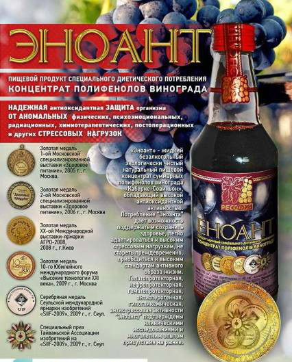 «Эноант» — натуральный продукт — концентрат антиоксидантов крымского винограда. Технология получения разработана и запатентована учеными Института винограда и вина «Магарач», Ялта, Крым.