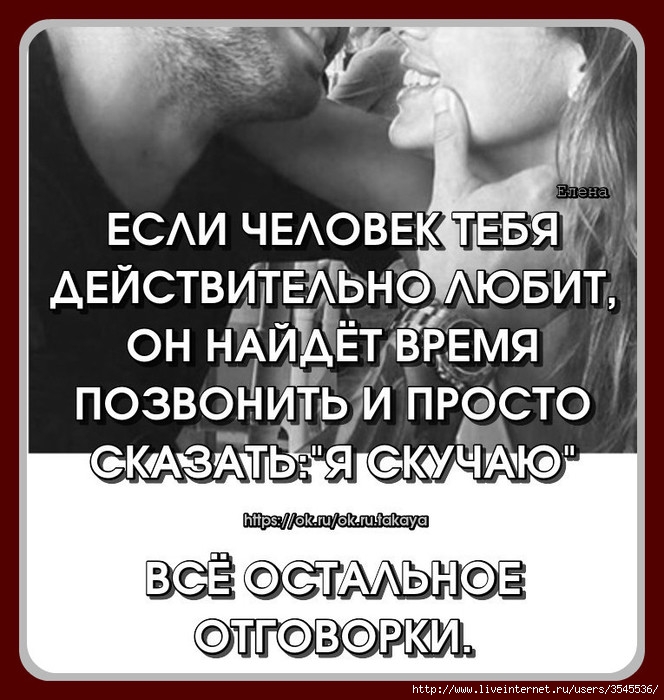 - Что он пишет и как может ответить на сообщения/звонки. Нужно проанализировать количество раз, которые он посвящает переписке или телефонным звонкам, их содержание, интонации. Например, если он ограничивается дежурными фразами типа «сегодня такая хорошая погодка была», то вероятность того, что он скучает, меньше. Но даже если эти слова говорятся с соответствующей интонацией, это может говорить о многом.