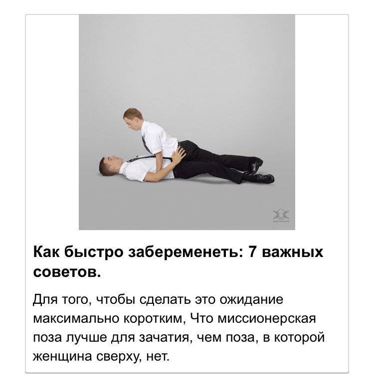 Целесообразно применение различных поз в сексе, которые могут помочь зачатию.