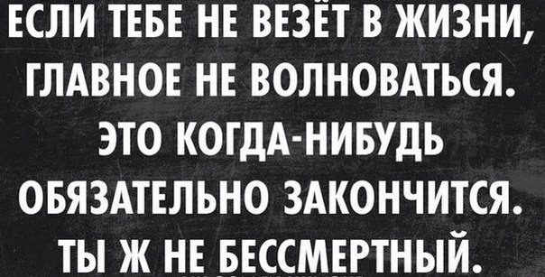 Раньше я думал, что удача приходит только к самым незаслуженным людям. Я не понял! Всем хорошим и добрым людям никогда не везло.