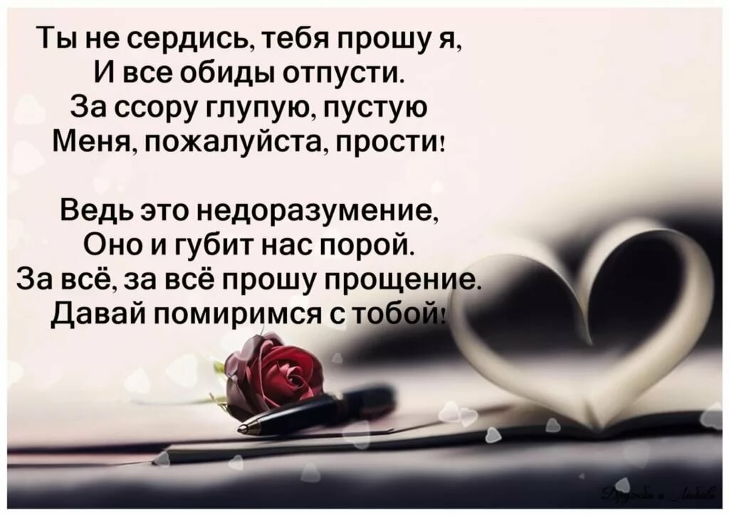 Прости меня за слова, сказанные в гневе, прошу не обижайся. Мне искренне жаль, любимая.