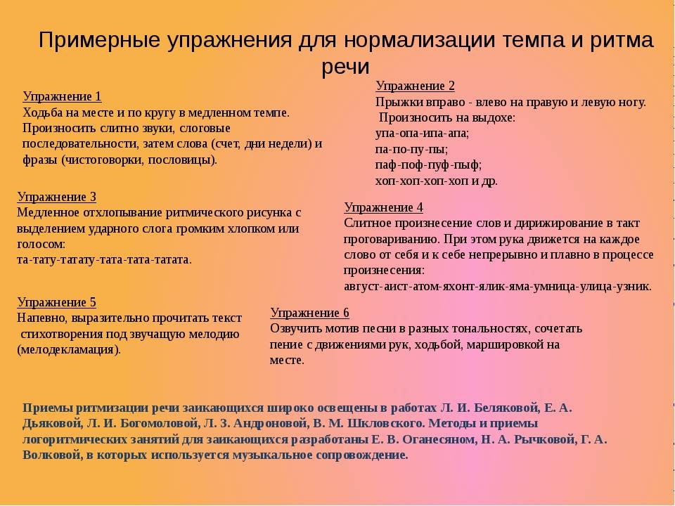 То есть на этапе формирования нового речевого навыка нужно буквально научиться говорить заново. Именно поэтому в методиках может использоваться прием речевой депривации, использование низкого темпа с постепенным его повышением, тренировка правильного речевого дыхания, жестикуляции, артикуляции и т.