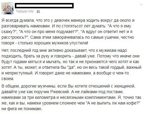 И это действительно нужно любой девушке, чтобы она могла расслабиться и получать удовольствие от секса с конкретным мужчиной. А те барышни, которые не нуждаются в защите и покровительстве, не нуждаются и в намеках. Собственно, они не нуждаются ни в чем, кроме веселого времяпрепровождения.
