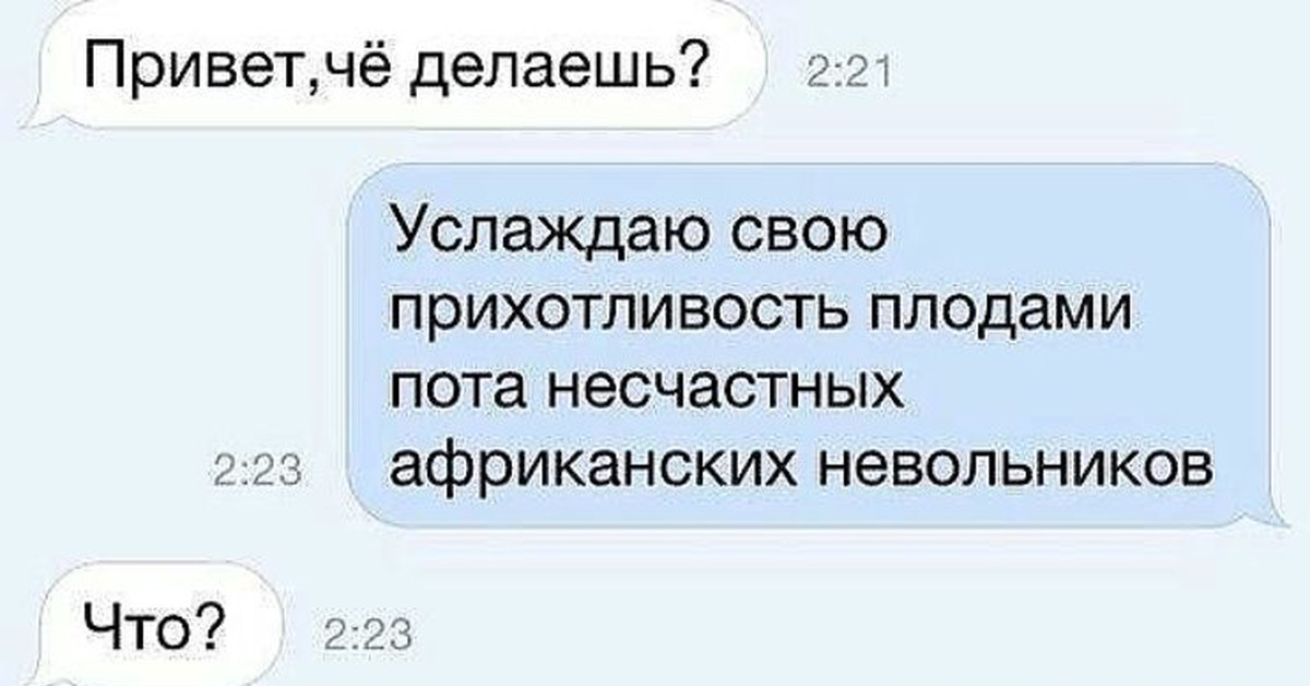 - Если вопрос «Что делаешь?» не слишком сложный для тебя, мог(ла) бы ты на него ответить?