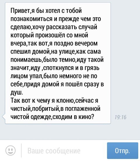 Наверное, часто посещаете спортзал?». - «У тебя отличный вкус в фильмографии. Думаю, смотреть с тобой какую-нибудь премьеру — настоящее удовольствие».