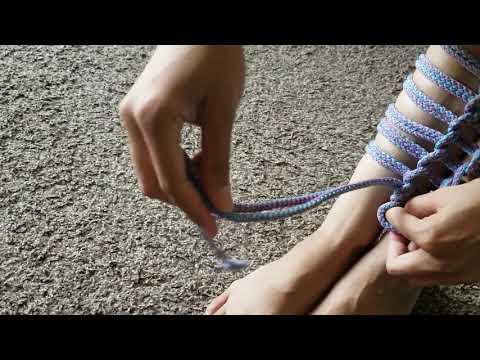 6. Оберните рабочий конец вокруг их лодыжек, чтобы они были плоскими и выровнялись с уже находящимися там веревками.