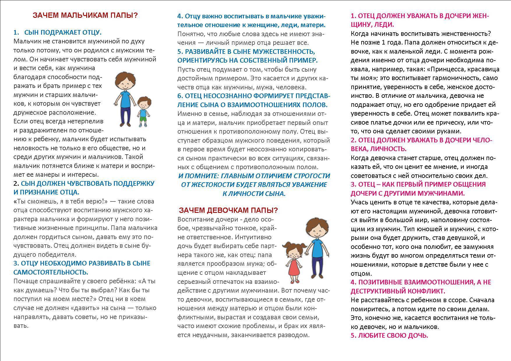Детям любого пола крайне важно внимание родителей. Необходимо слушать, слышать, понимать ребенка, интересоваться им — искренне интересоваться! Это позволит сохранить контакт даже в подростковом возрасте, и ребенок будет учитывать родительское мнение, уважать родительские чувства, опираться на ценности, которые заложат в него в семье.
