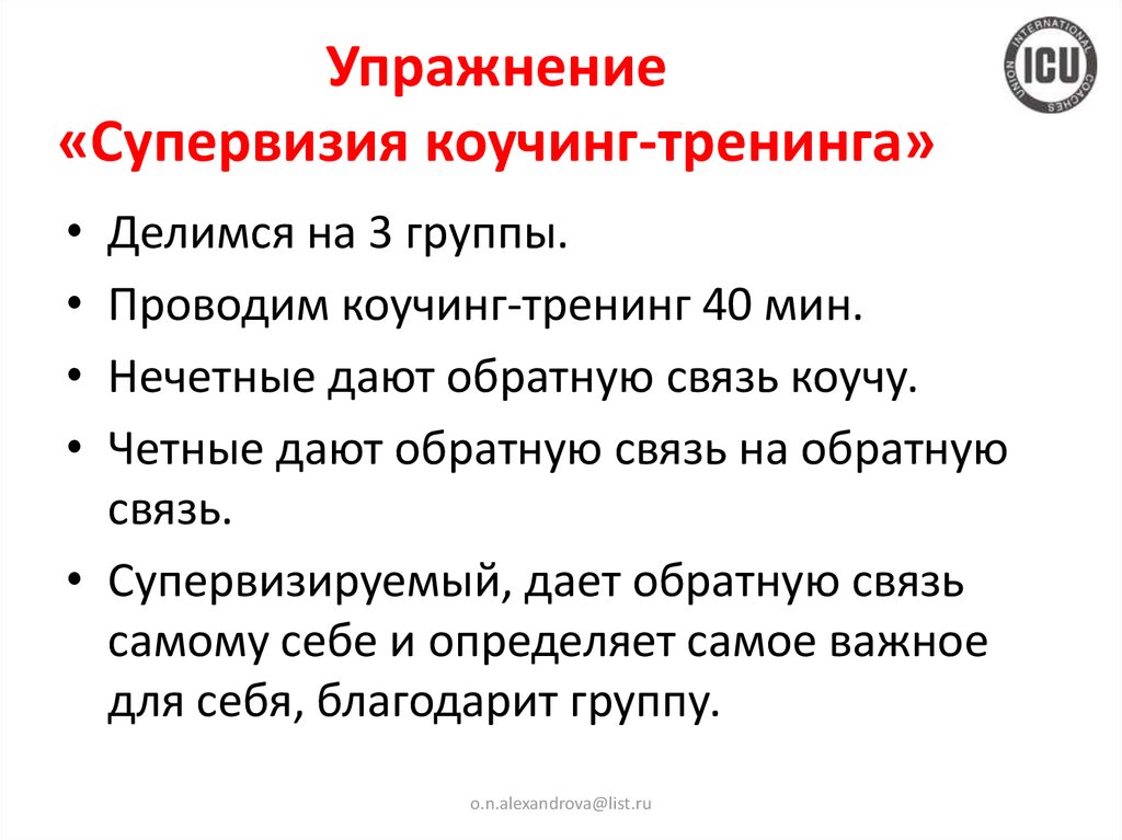 Установите категорию вопросов в зависимости от темы тренинга. Закончите упражнение обсуждением чувств и мыслей участников. При этом важно уделить внимание трем аспектам: