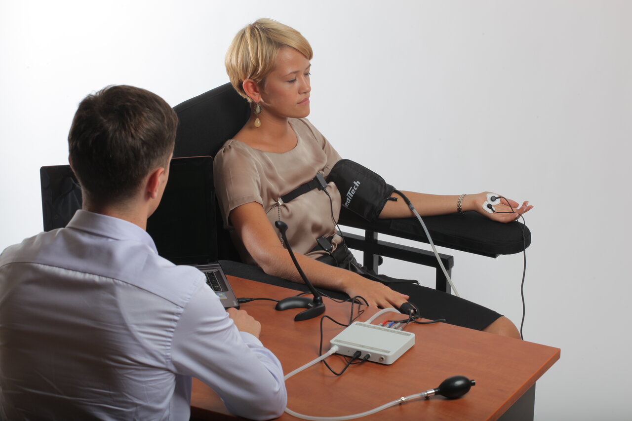 В основе работы детектора лжи лежат естественные психофизиологические процессы, определение, фиксация и оценка которых позволяет выявить микрострессы у человека. Специалист прикрепляет к телу тестируемого специальные датчики, задача которых – засечь резкие изменения в реакции организма. Датчики крепят к тем местам, в которых эти изменения проявляются наиболее отчетливо: они следят за артериальным давлением, ритмом дыхания, учащением пульса и сердцебиением. После установки датчиков человеку предлагают пройти тест, включающий большое количество вопросов.