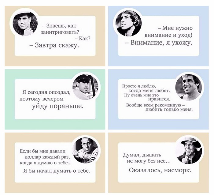 Давать множество шаблонов для общения – бесполезно, потому как парень сам должен проявлять инициативу. На самом деле можно придумать массу примеров, главное – во фразах не должно быть пошлости, открытой лести, двусмысленности.