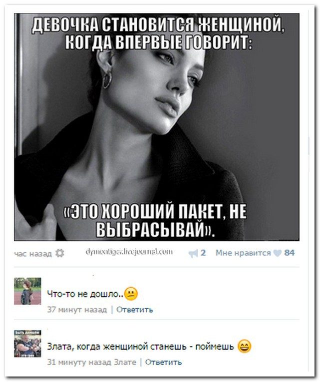 Худшее, что может случиться с женщиной, — это превращение в тетку. Потому что тетка — это такой монстр, рядом с которым невыносимо находиться дольше пяти минут. Неизвестно, почему множество прекрасных женщин превращаются в человека-управдома, зато точно известно, как выглядят первые признаки превращения. Вот так.