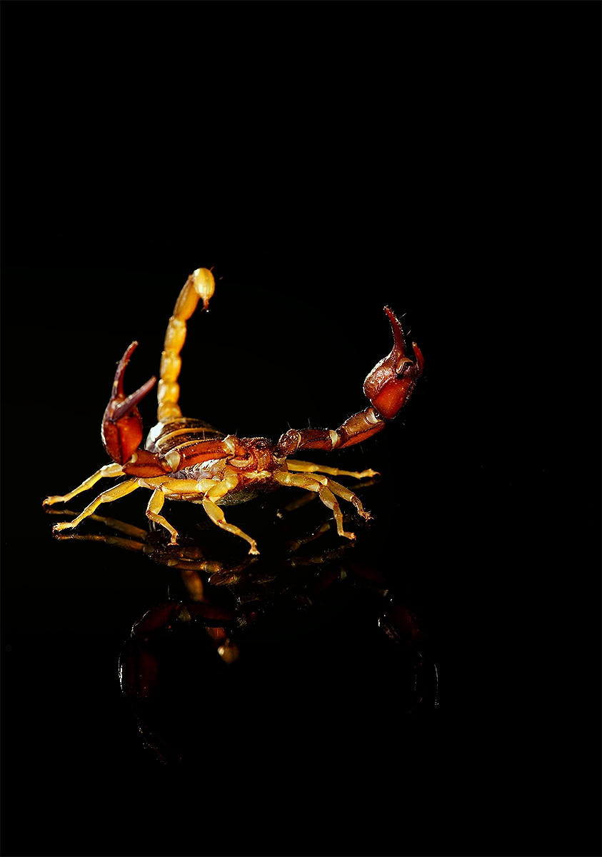 У скорпионов плохое зрение, но их глаза очень чувствительны к изменениям света, особенно к тому цвету, который они видят лучше всего, а именно сине-зеленому.