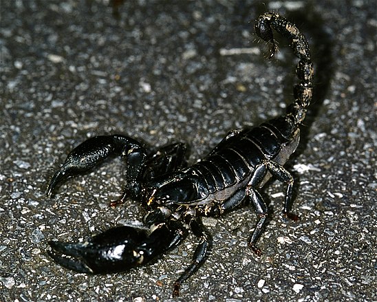 Реагируя на ультрафиолетовый свет, скорпионы (или экзоскелеты) работают как один большой глаз; датчик «всего тела», передающий информацию в нервную систему, так что любая часть скорпиона может «видеть», превращая все его тело в светоприемник.