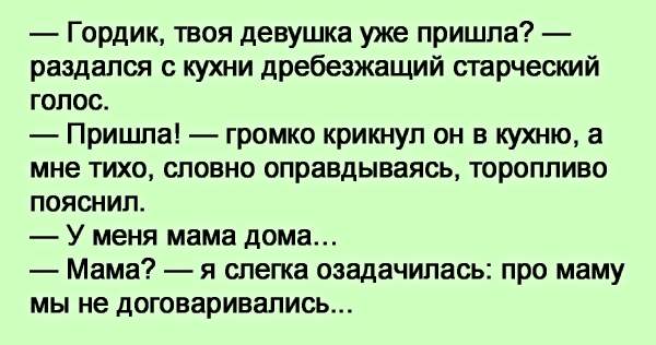 В-третьих, постарайся подружиться с его мамой. Убеди ее в том, что ты ей не враг, и занимать ее место не собираешься. Сблизившись с ней, очень постепенно и аккуратно ты сможешь начать доказывать ей (ну, ладно, хотя бы намекать), что ее сын давно вырос и многое способен решать сам.