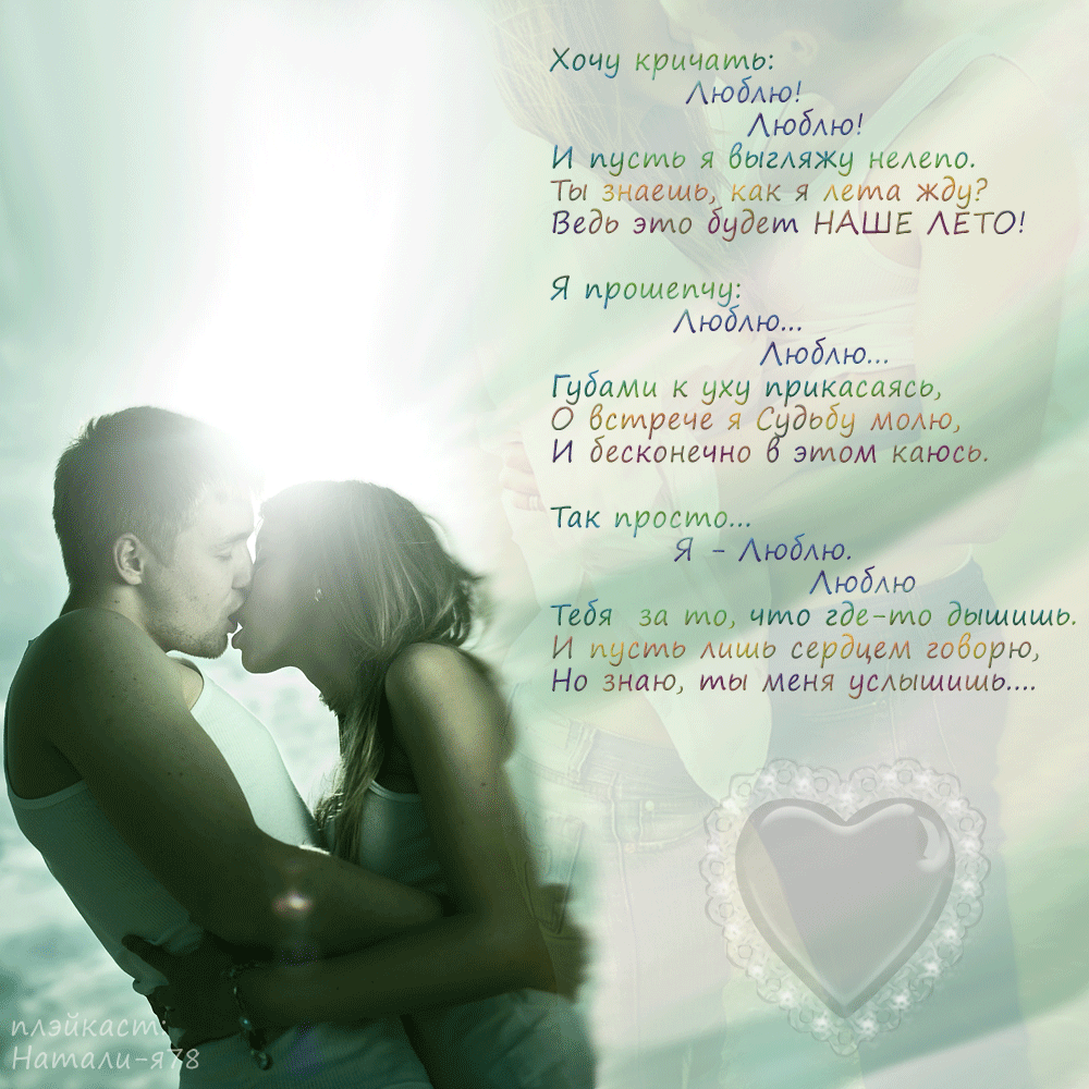 Через три недели, когда я почувствовал, что она на той же волне, что и я, что наша тяга друг к другу одинакова, во время прогулки в парке в уединенном месте я поставил на телефоне одну из наших любимых мелодий, закружил ее в танце и, нежно обняв, признался в любви и услышал в ответ сокровенное: «И я тебя люблю!» Мы закрыли глаза… Это был момент счастья, который мы не забудем никогда. И только вечером, когда я провожал ее до дома, мы впервые поцеловались».