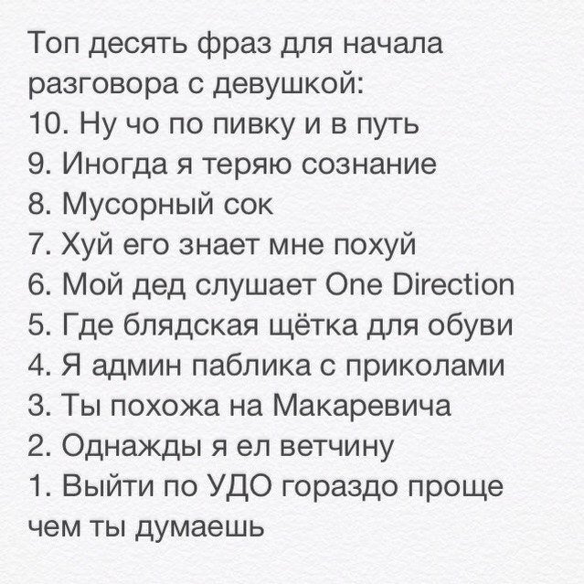 6. Лучший вариант начать разговор, если кто-то из вас стеснителен, и у вас есть общие знакомые: «Привет, ты не видела Лешу/Пашу/Сашу?»