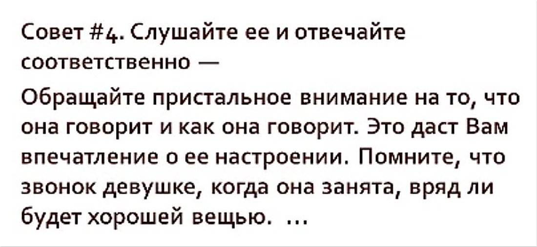 - Не перебивать девушку в разговоре, а выслушивать до конца