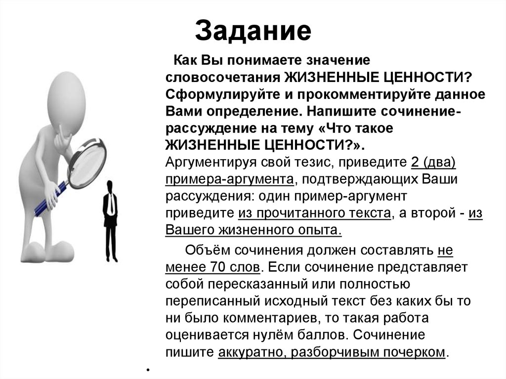 Жизненные ценности — примеры сочинений 9.