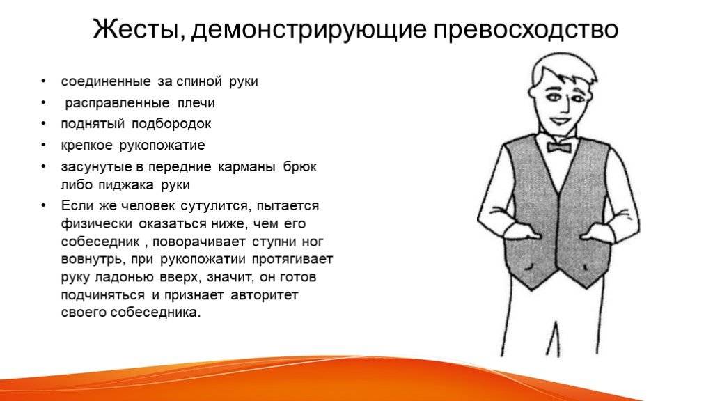 Жесты доминантности-подчиненности.Превосходство может быть выражено в