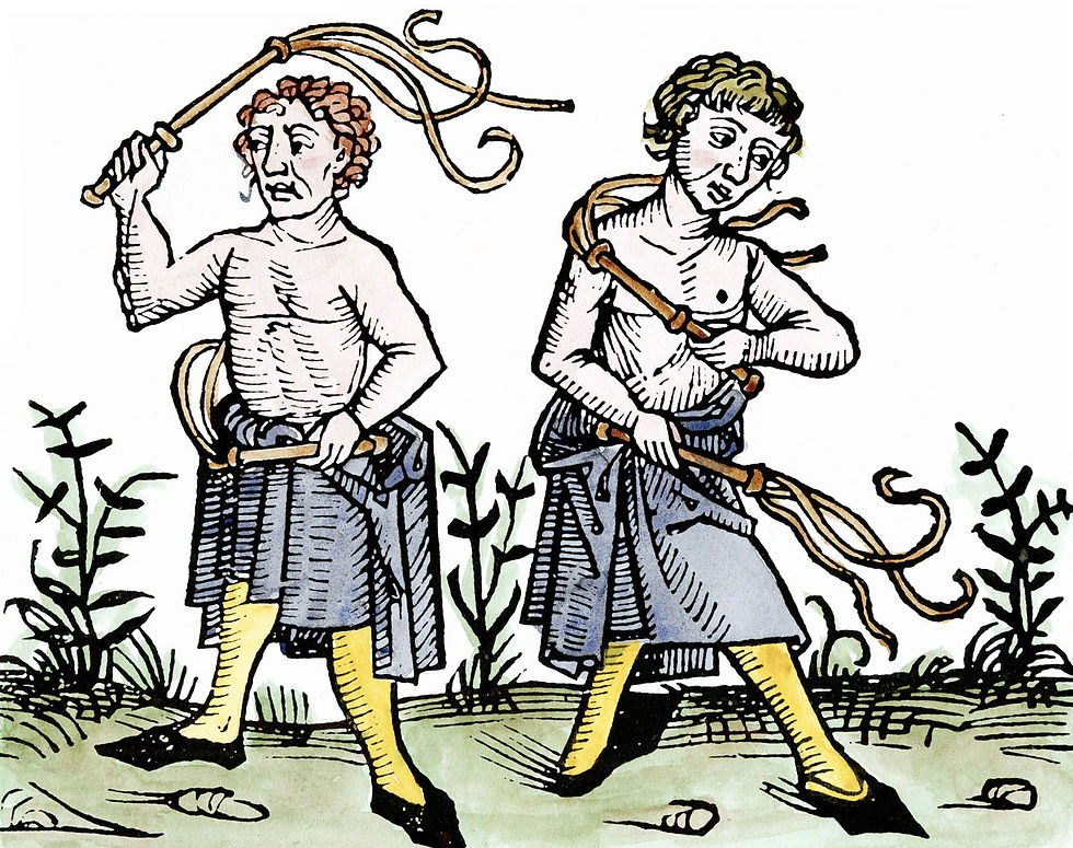 Вспышка Черной смерти в 1347 году привела к массовому возрождению жгутиконосцев. Папа Климент VI, как известно, разрешил это для этой цели в 1348 году, а Мартин Лютер, протестантский реформатор, регулярно практиковал самобичевание как средство умерщвления плоти.
