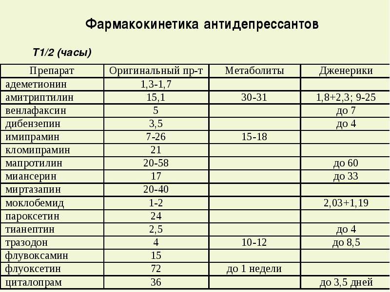 - Эта таблица включает только распространенные побочные эффекты. Некоторые антидепрессанты могут иметь менее распространенные, более серьезные побочные эффекты, включая учащение суицидальных мыслей.