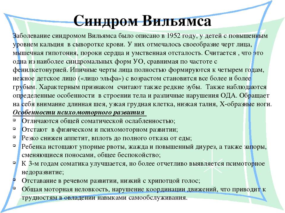 - Симптомы синдрома Вильямса