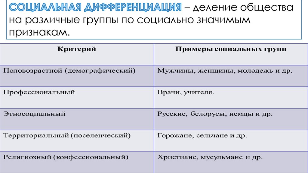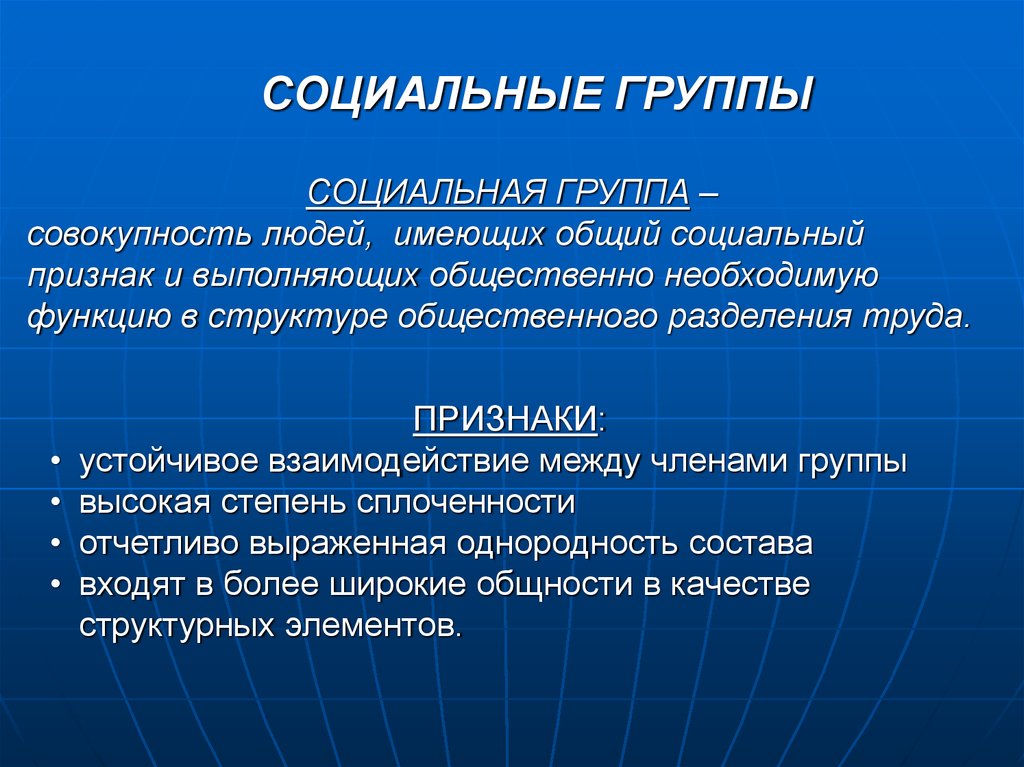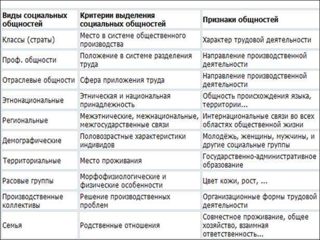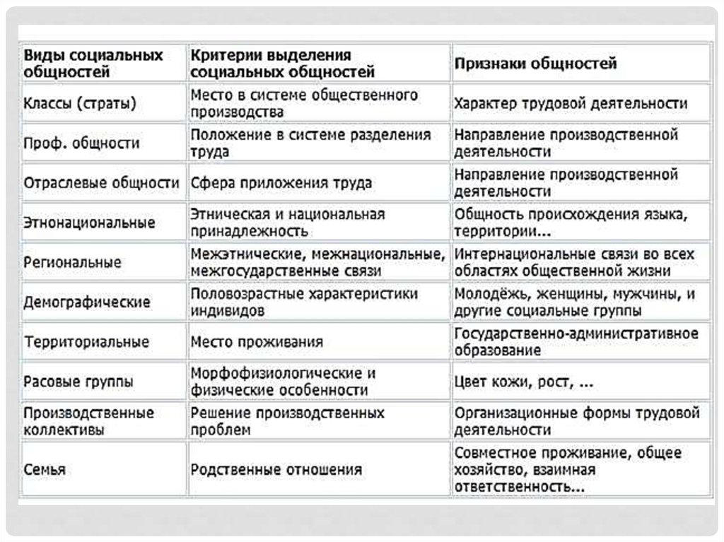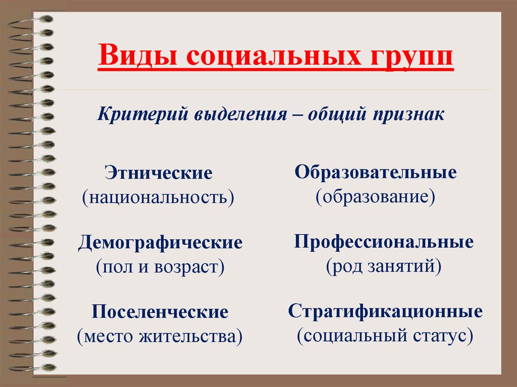 ВИДЫ СОЦИАЛЬНЫХ ГРУПП