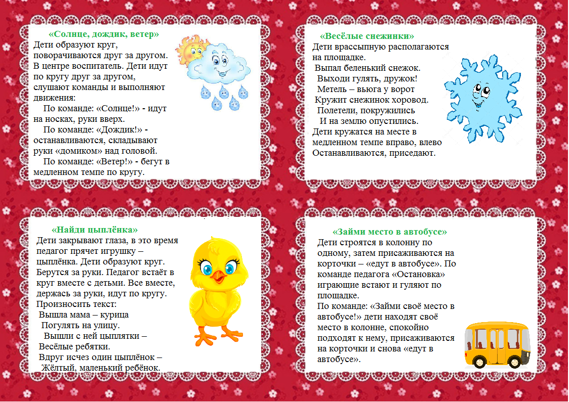 Для ребёнка 3–4 лет рекомендуется выбирать четверостишия, состоящие преимущественно из глаголов и существительных. Содержание стихов должно быть увлекательным и описывать уже знакомые ребёнку игрушки, предметы или животных, их действия.