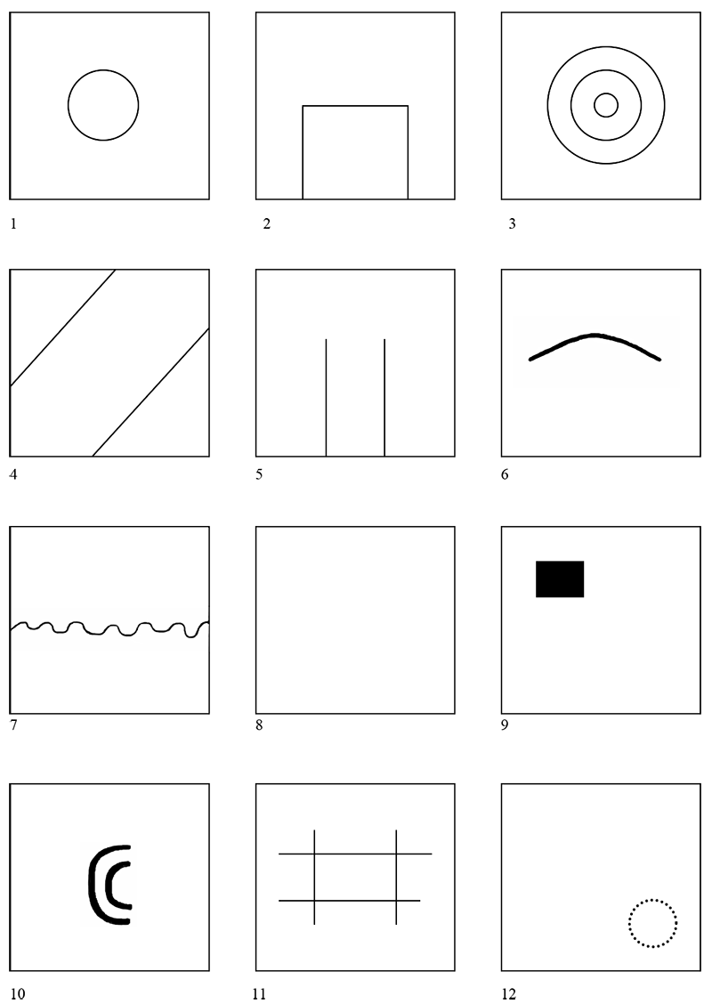 Для прохождения этого теста также понадобятся чистые листы бумаги и карандаши, 12 которые нужно раздать перед объявлением задания. Заранее нарисуйте на плакате квадрат, треугольник, прямоугольник, круг и зигзаг и прикрепите его к стене таким образом, чтобы было видно всем присутствующим.