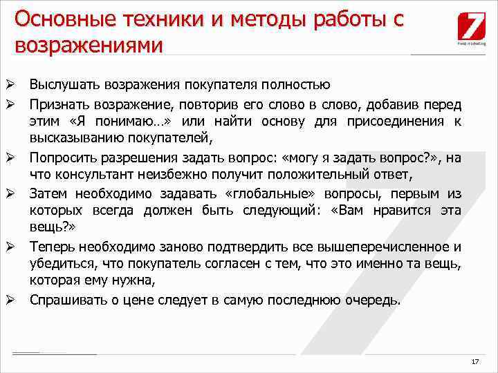 Ваша задача — убедиться, что вы работаете с верным возражением.