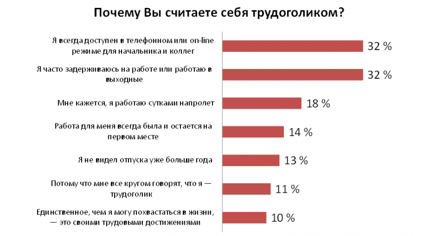 На фоне нестабильности и массовых сокращений люди стремятся всеми силами доказать, что нужны своей компании. Это отличная почва для трудоголизма. Проблема в том, что трудоголики — не просто увлеченные работой и продуктивные люди. Они эмоционально зависят от работы, не могут от нее отключиться даже в нерабочее время и отдают ей все силы в ущерб личной жизни.