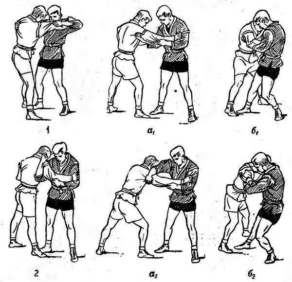- Захват кисти. Применяется для защиты от ударов руками. При выполнении нужно захватывать именно ту руку, которой бьет соперник: