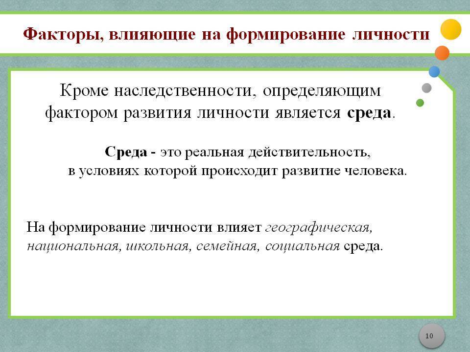 Чтобы детально рассмотреть воздействие определенных факторов на развитие личности, необходимо разобрать каждый из них в отдельности сформулировав четкое и соответствующее определение.