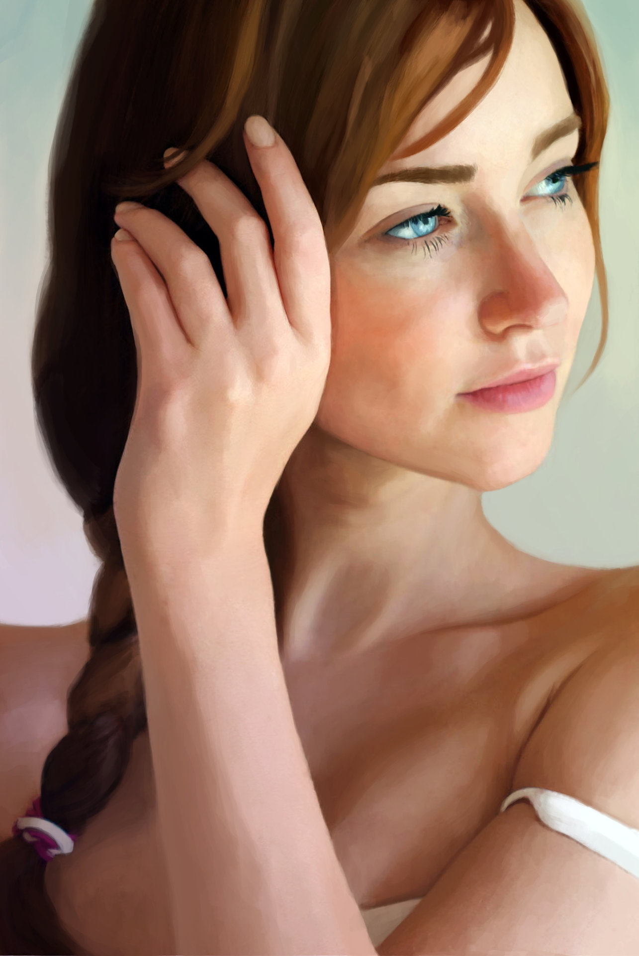 28. Она много играет со своими волосами